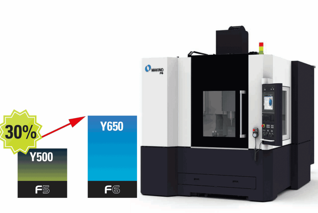 Makino visade till exempel fräsmaskinen Makino F6 som är en uppgradering av den tidigare versionen F5. 30% högre slaglängd i Y är en av förbättringarna.